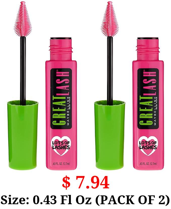 $ 7.94 Size: 0.43 Fl Oz (PACK OF 2) Maybelline New York Great Lash Lots Of Lashes Washable Mascara, Brownish Black, 0.86 fl oz, 2 Count