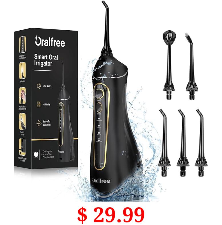 $ 29.99 Oralfree Water Dental flosser Teeth Picks - Braces Cordless Oral Irrigator Portable Rechargeable Travel Irrigation Cleaner IPX7 Waterproof Electric Professional Flossing Teeth Cleaning for Home