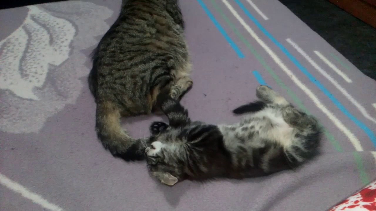 Gatitos bebes jugando con la cola de su Mamá - YouTube