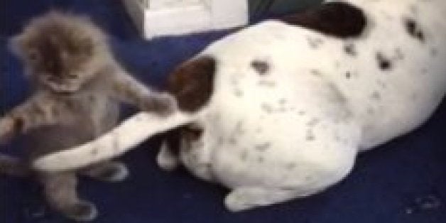 VIDEO VIRAL: Gatito juega con la cola de un perro en . . .