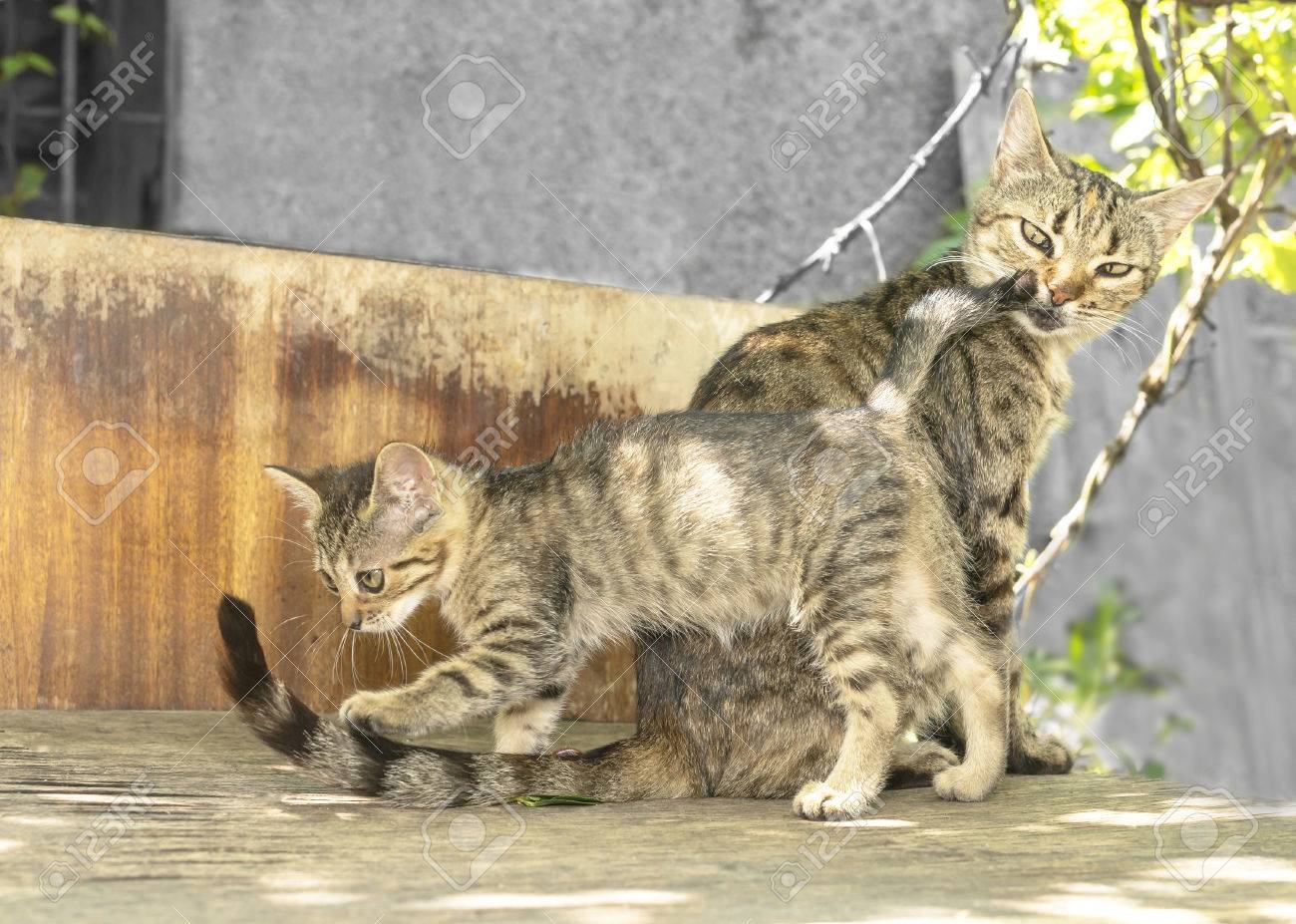 Lindo gatito está jugando con la cola de su madre . Acerca de las Licencias . 0 . Lindo gatito está acostado sobre una roca y jugando con la cola de su madre y mordiéndola . Esto se ve gracioso . Descarga gratuita . Esta imagen también aparece en búsquedas de . . .