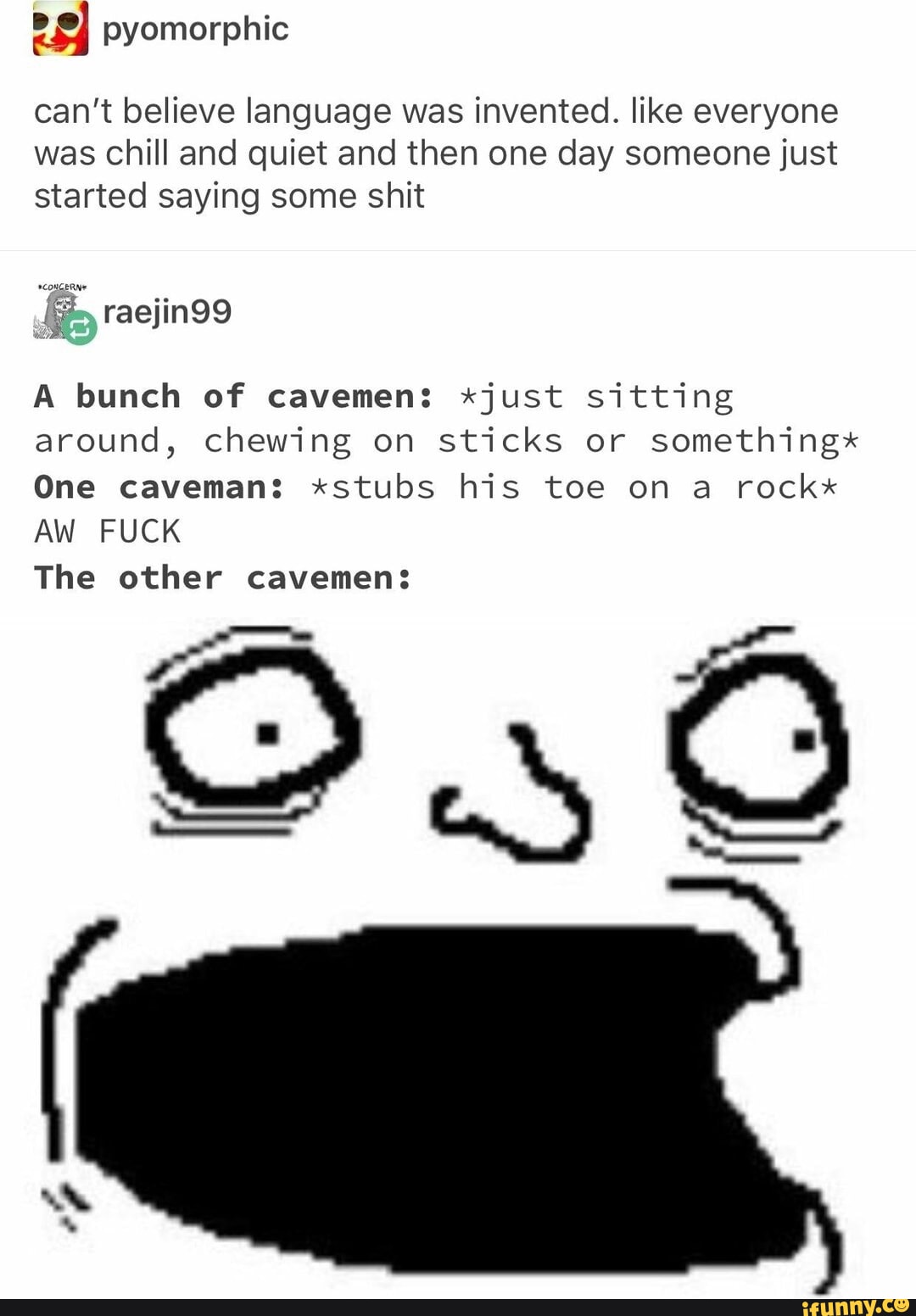just sitting around-on his face