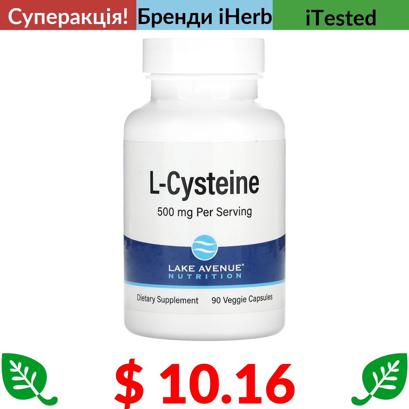 $ 10.16 Lake Avenue Nutrition, L-цистеїн, 500 мг, 90 вегетаріанських капсул