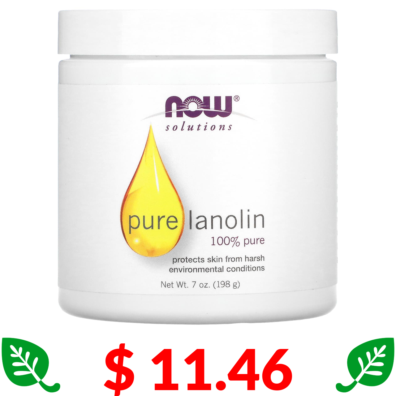 $ 11.46 Now Foods, Solutions, чистий ланолін, 198 г (7 унцій)