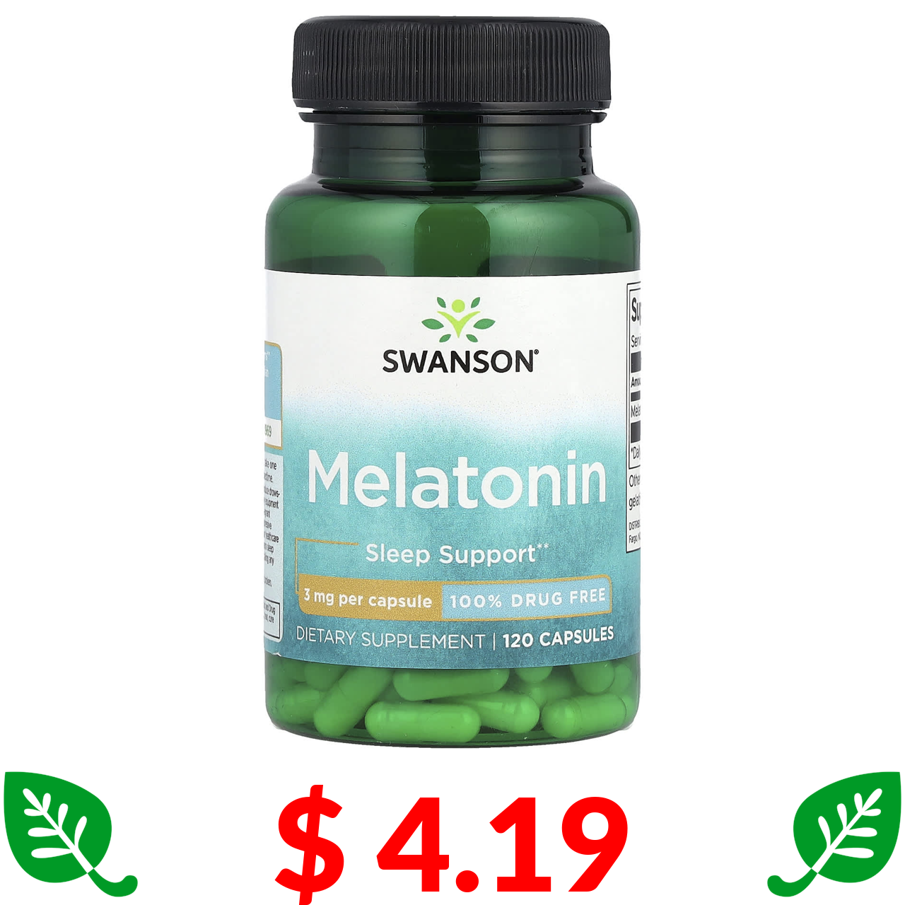 $ 4.19 Swanson, мелатонін, 3 мг, 120 капсул