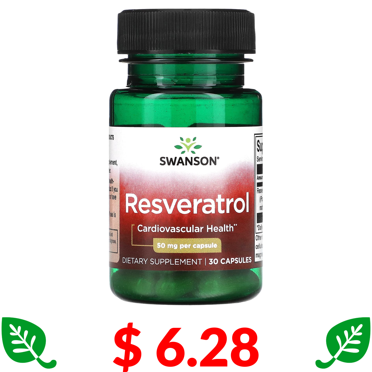 $ 6.28 Swanson, ресвератрол, 50 мг, 30 капсул