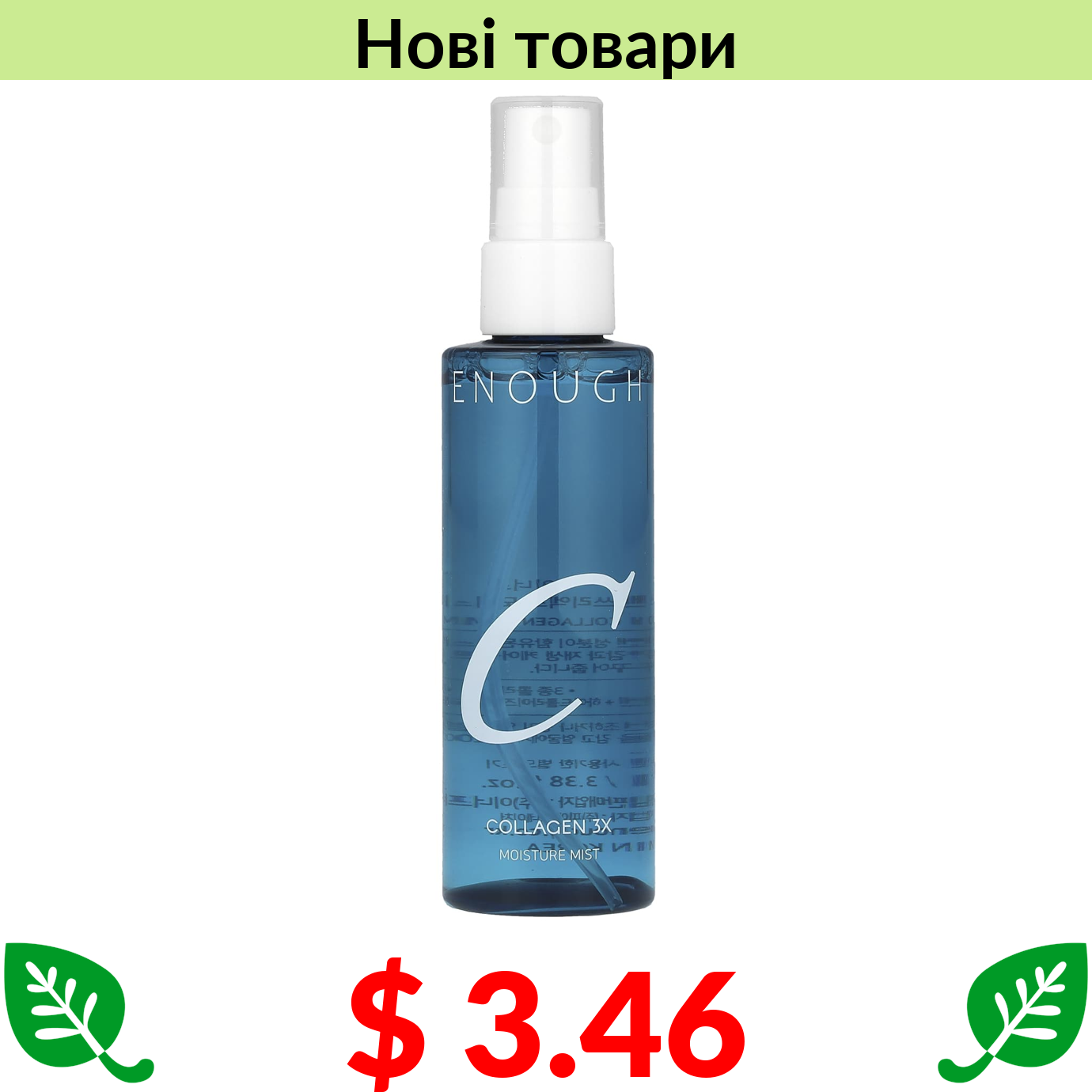 $ 3.46 Enough, Collagen 3X, зволожувальний спрей із колагеном, 100 мл (3,38 рідк. унції)