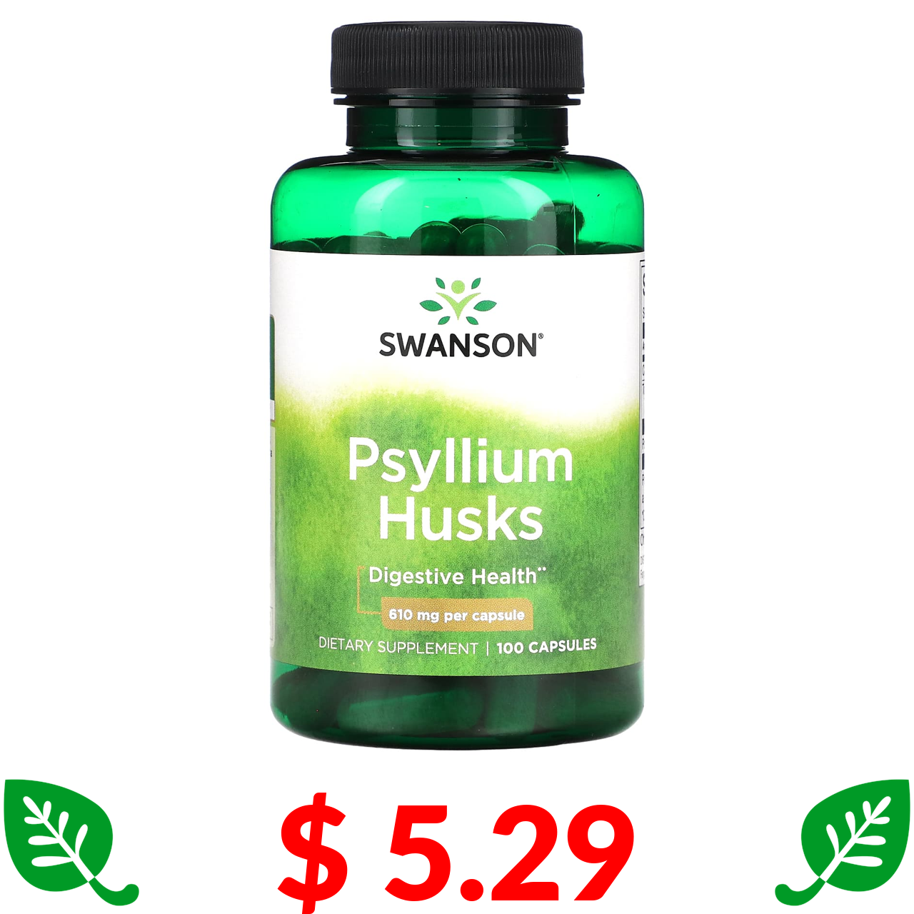 $ 5.29 Swanson, лушпиння насіння подорожника, 610 мг, 100 капсул