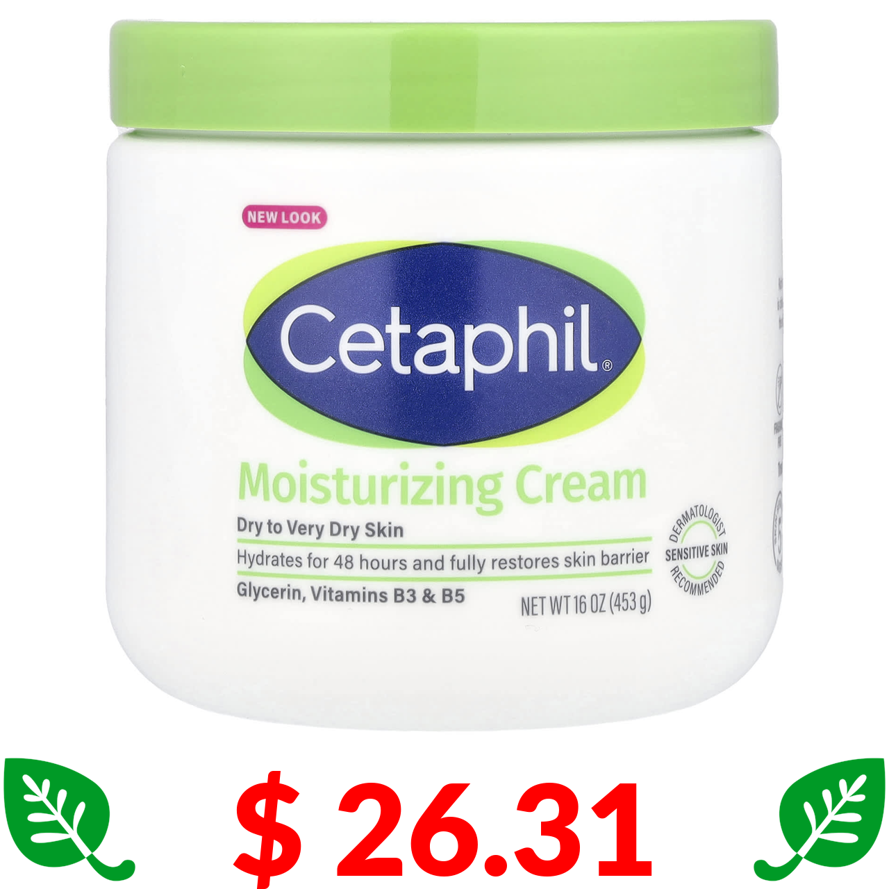 $ 26.31 Cetaphil, зволожувальний крем для сухої та дуже сухої шкіри, 453 г (16 унцій)