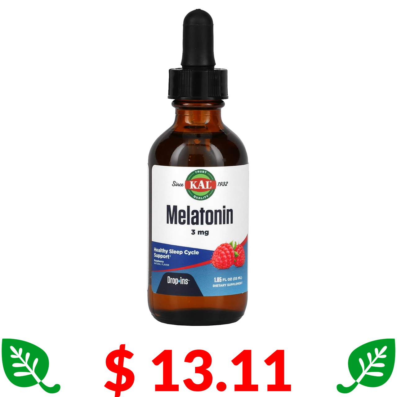 $ 13.11 KAL, Melatonin, Natural Raspberry Flavor, 3 mg, 1.85 fl oz (55 ml)
