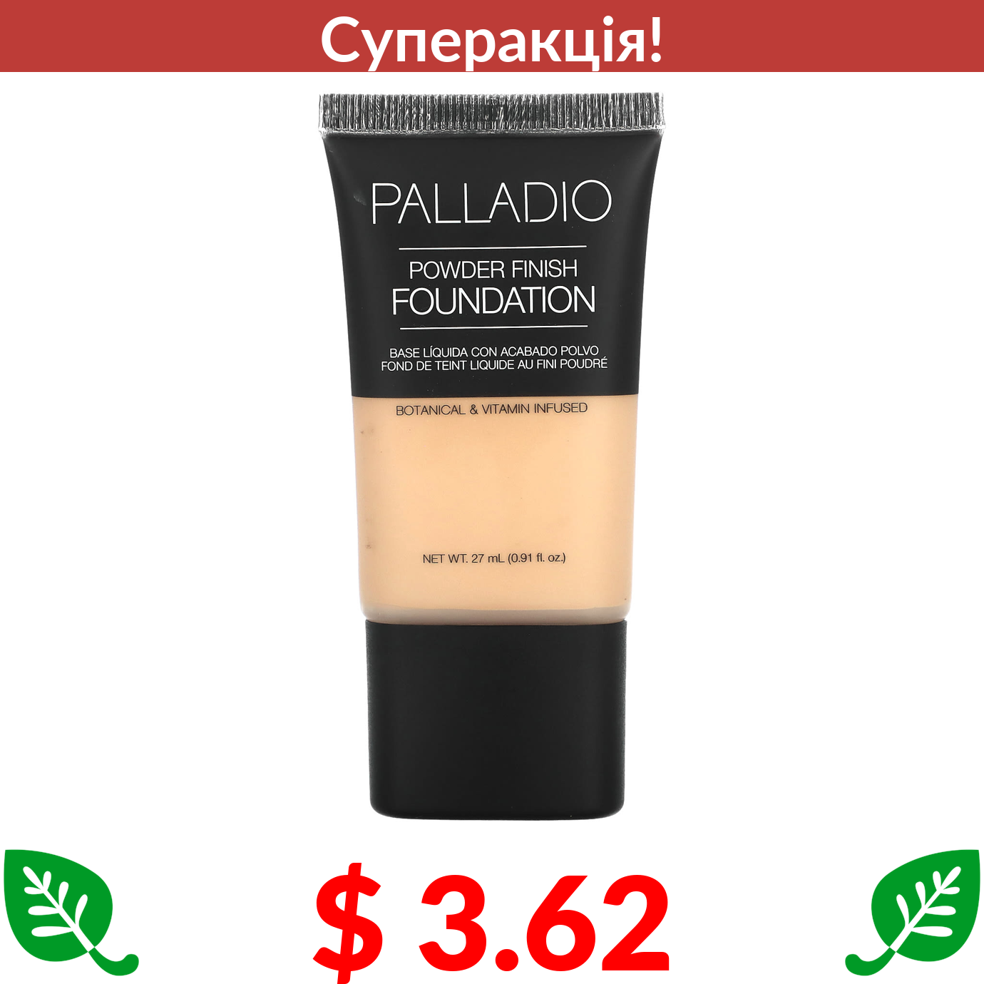 $ 3.62 Palladio, тональна пудра, фарфор, PFS02, 27 мл (0,91 рідк. унції)
