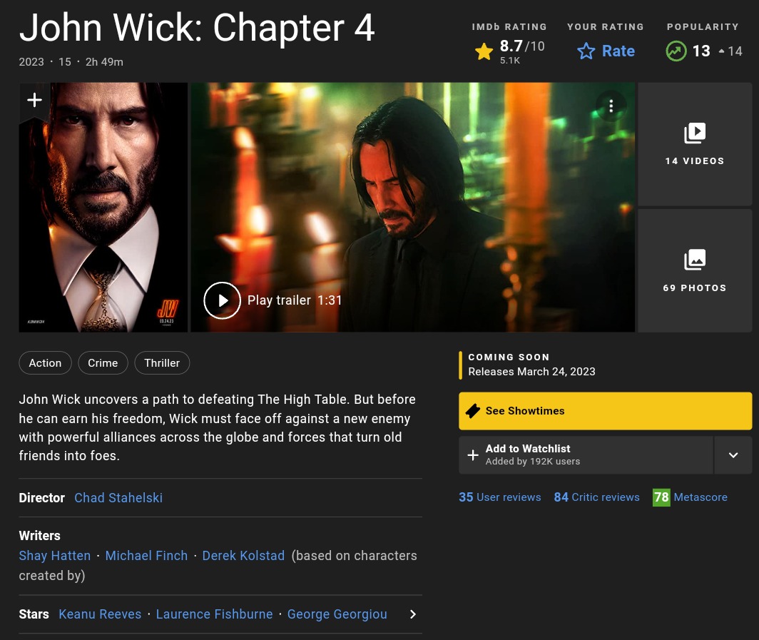 John Wick: Chapter 4 (2023) BluRay 720p/1080p