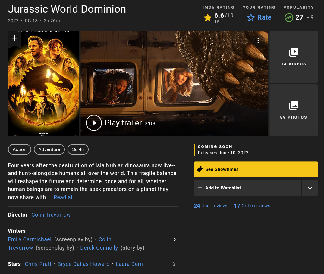 Jurassic World Dominion (2022) BluRay 720p/1080p