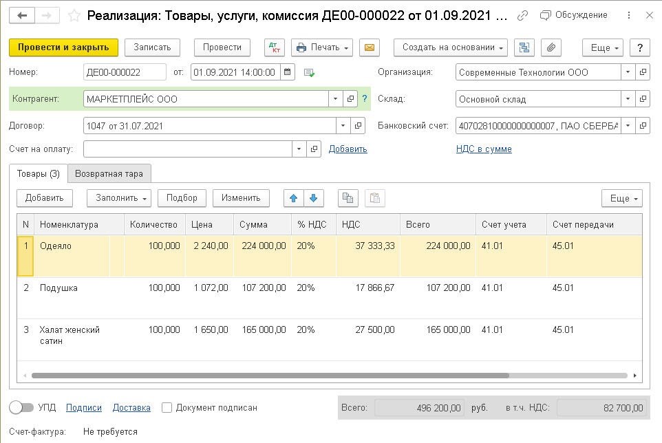 Счет реализации продукции 113 фото