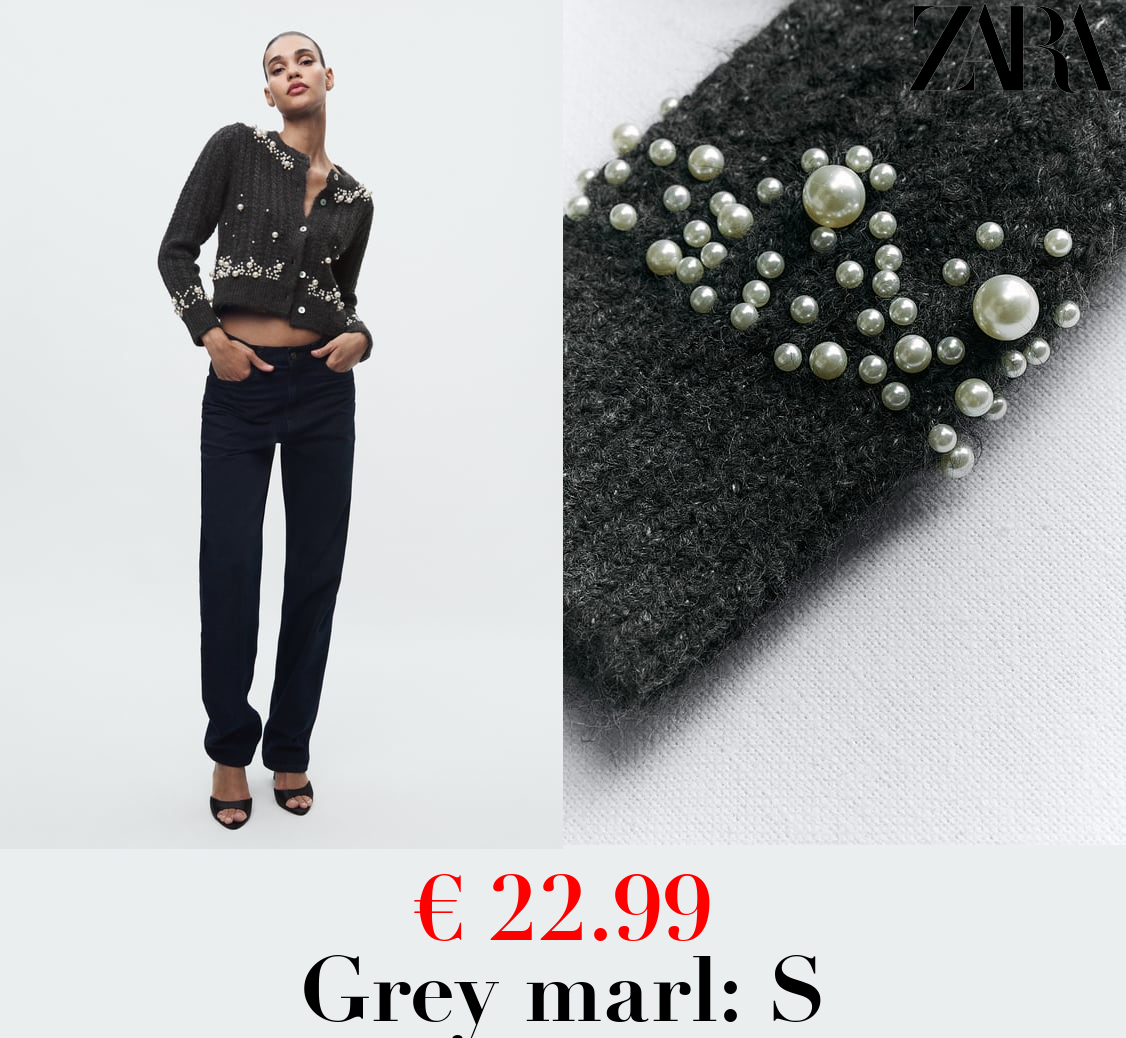 € 22.99 CROPPED KNIT CARDIGAN WITH BEADING