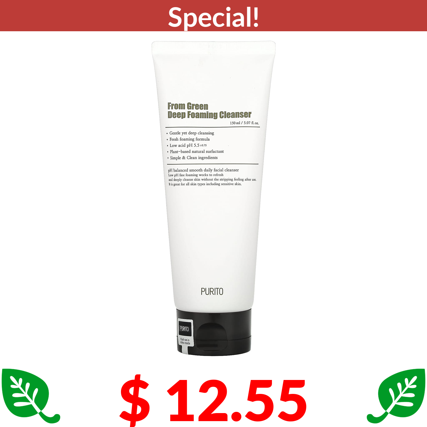 $ 12.55 Purito, From Green, Deep Foaming Cleanser, 5.07 fl oz (150 ml)