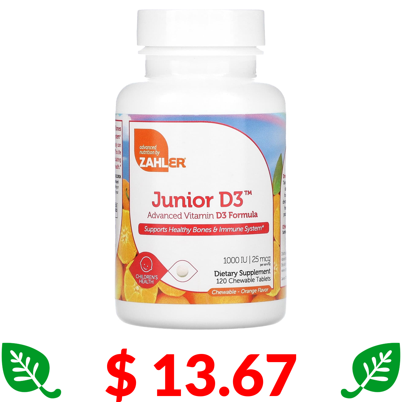$ 13.67 Zahler, Junior D3, Advanced Vitamin D3 Formula, Orange, 25 mcg (1,000 IU), 120 Chewable Tablets