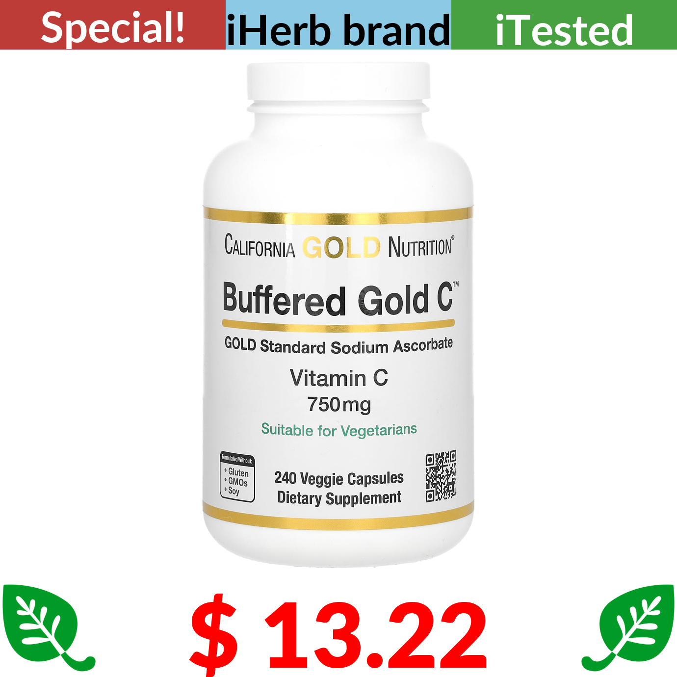 $ 13.22 California Gold Nutrition, Buffered Gold C, GOLD Standard Sodium Ascorbate (Vitamin C), 750 mg, 240 Veggie Capsules