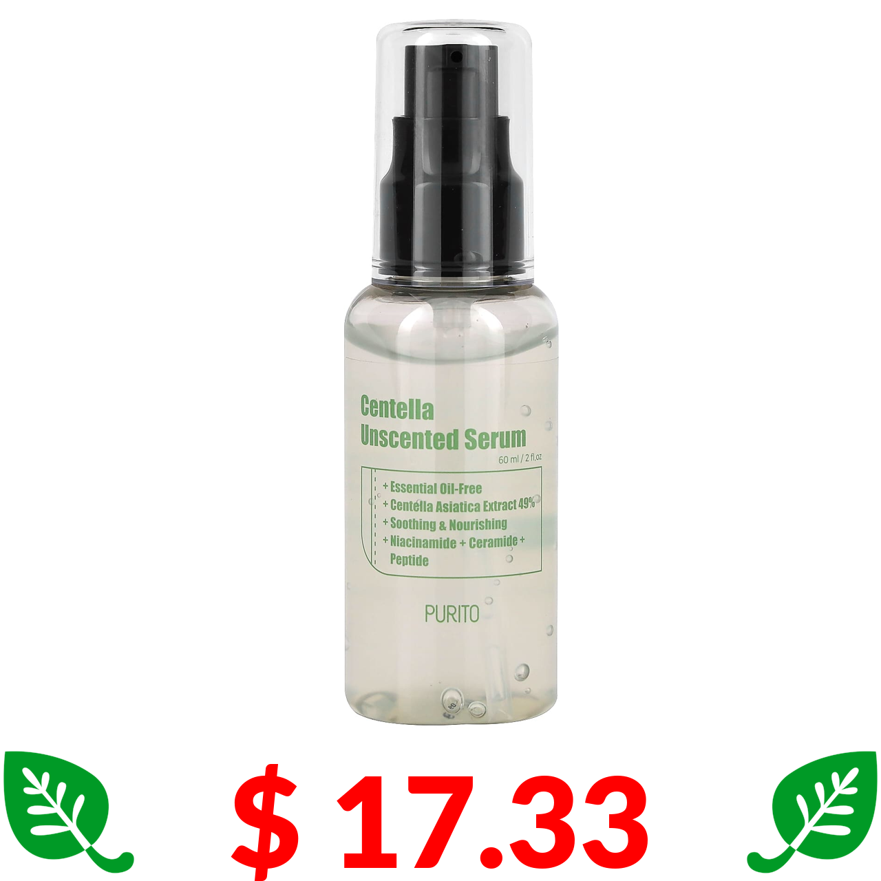 $ 17.33 Purito, Centella Unscented Serum, 2 fl oz (60 ml)