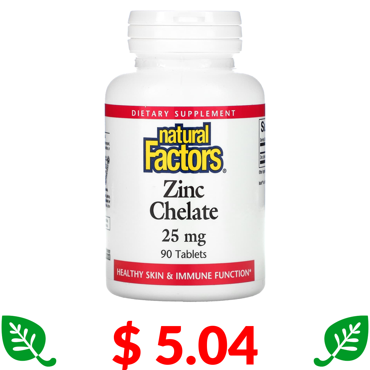 $ 5.04 Natural Factors, Zinc Chelate, 25 mg, 90 Tablets