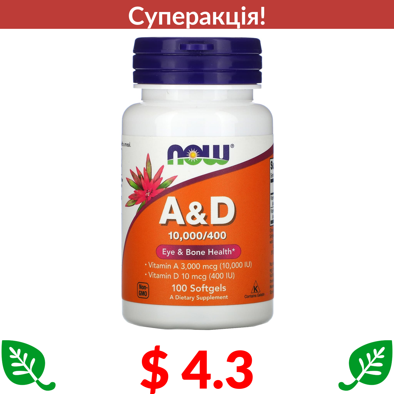$ 4.3 Now Foods, вітаміни A і D, 100 капсул