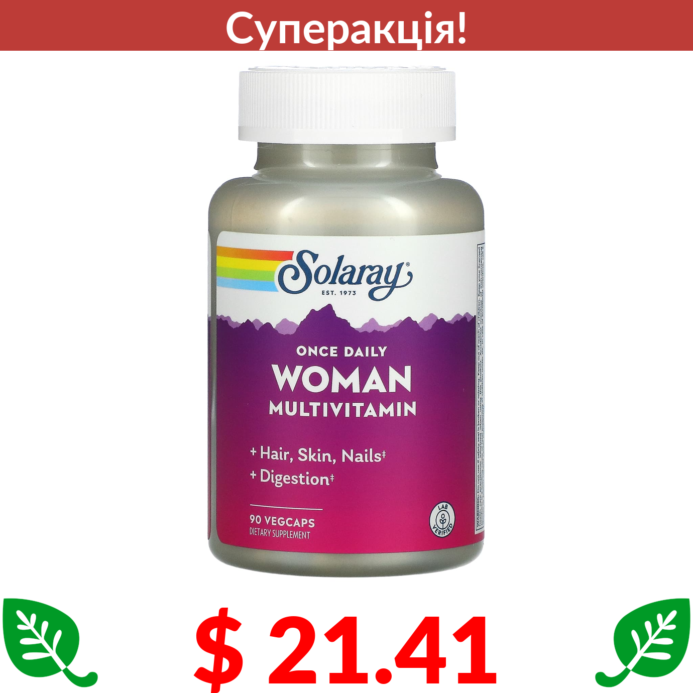 $ 21.41 Solaray, Once Daily, мультивітаміни для жінок, 90 капсул VegCap