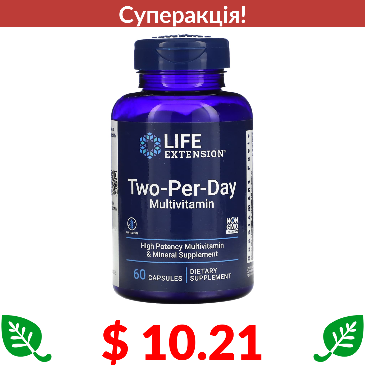 $ 10.21 Life Extension, мультивітаміни для прийому двічі на день, 60 капсул