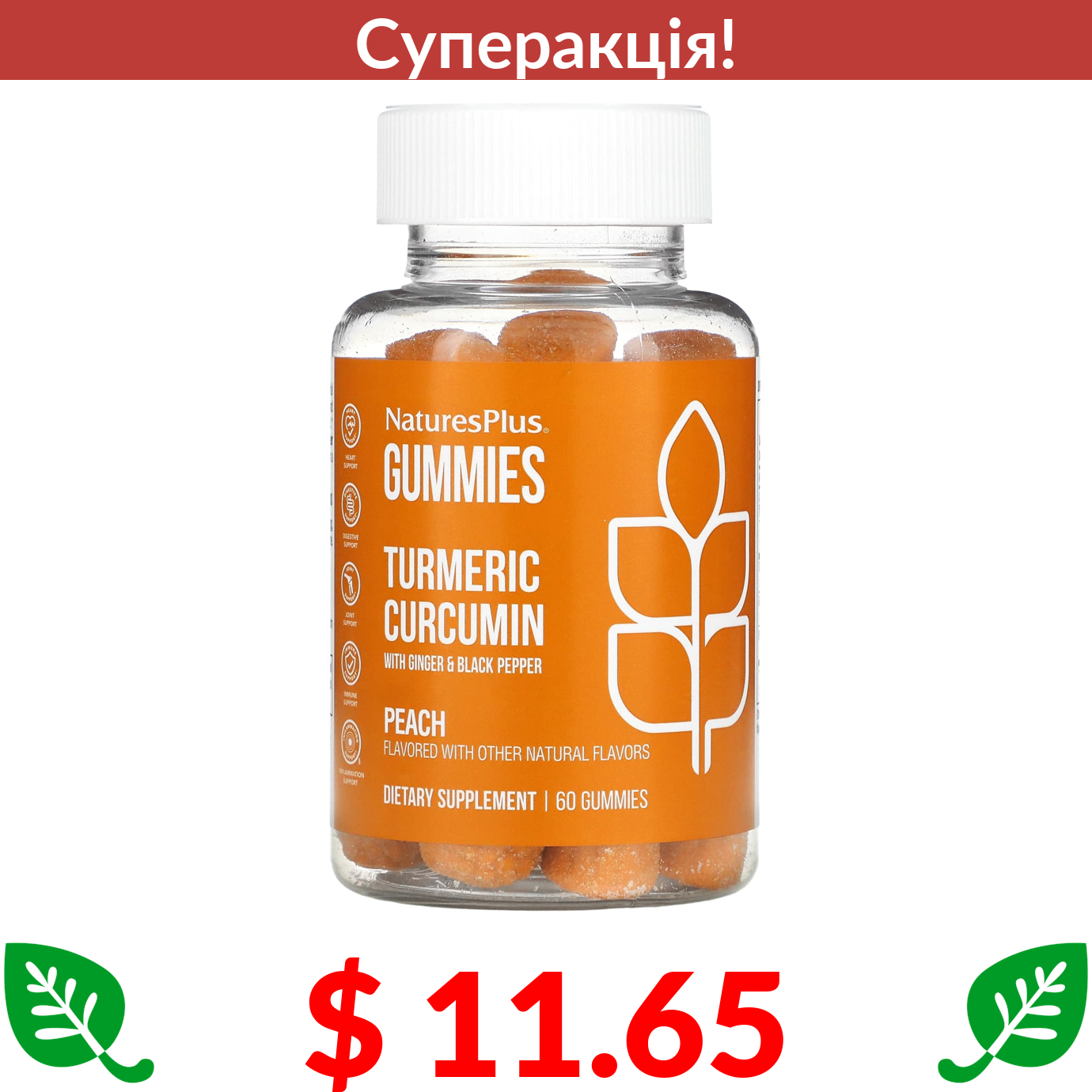 $ 11.65 Nature's Plus, Turmeric Curcumin With Ginger & Black Pepper, Peach, 60 Gummies