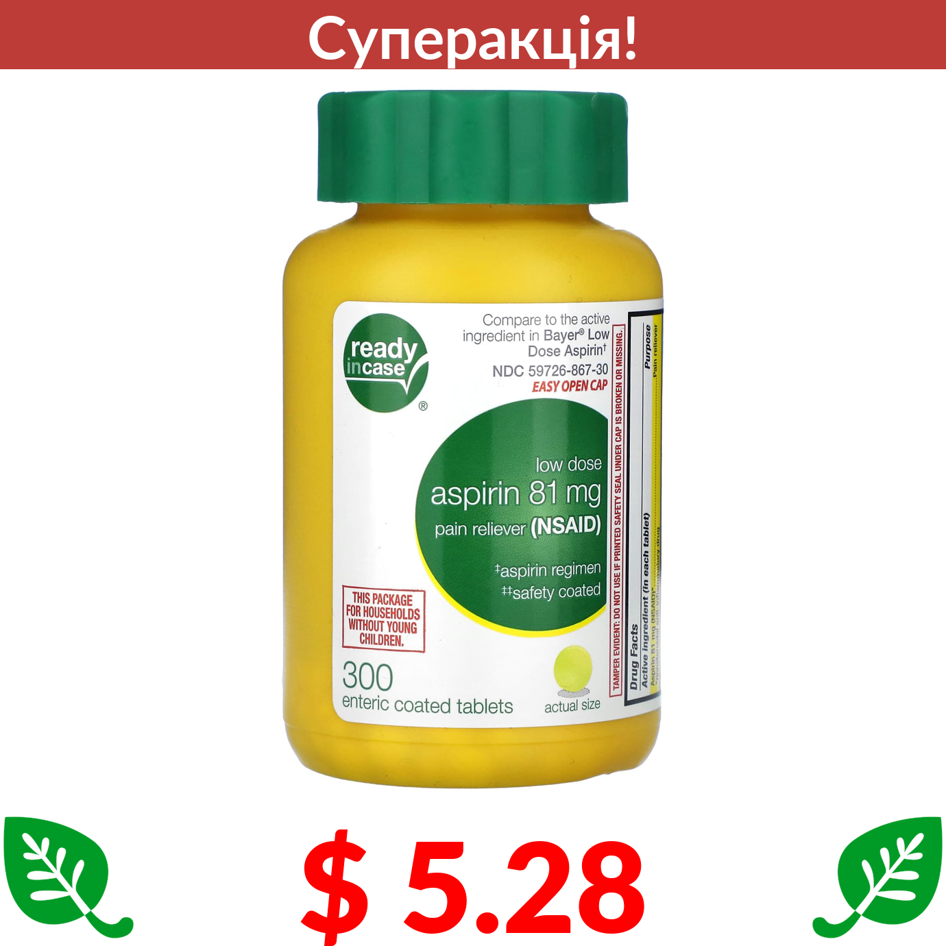 $ 5.28 Life Extension, Aspirin, 81 mg, 300 Enteric Coated Tablets