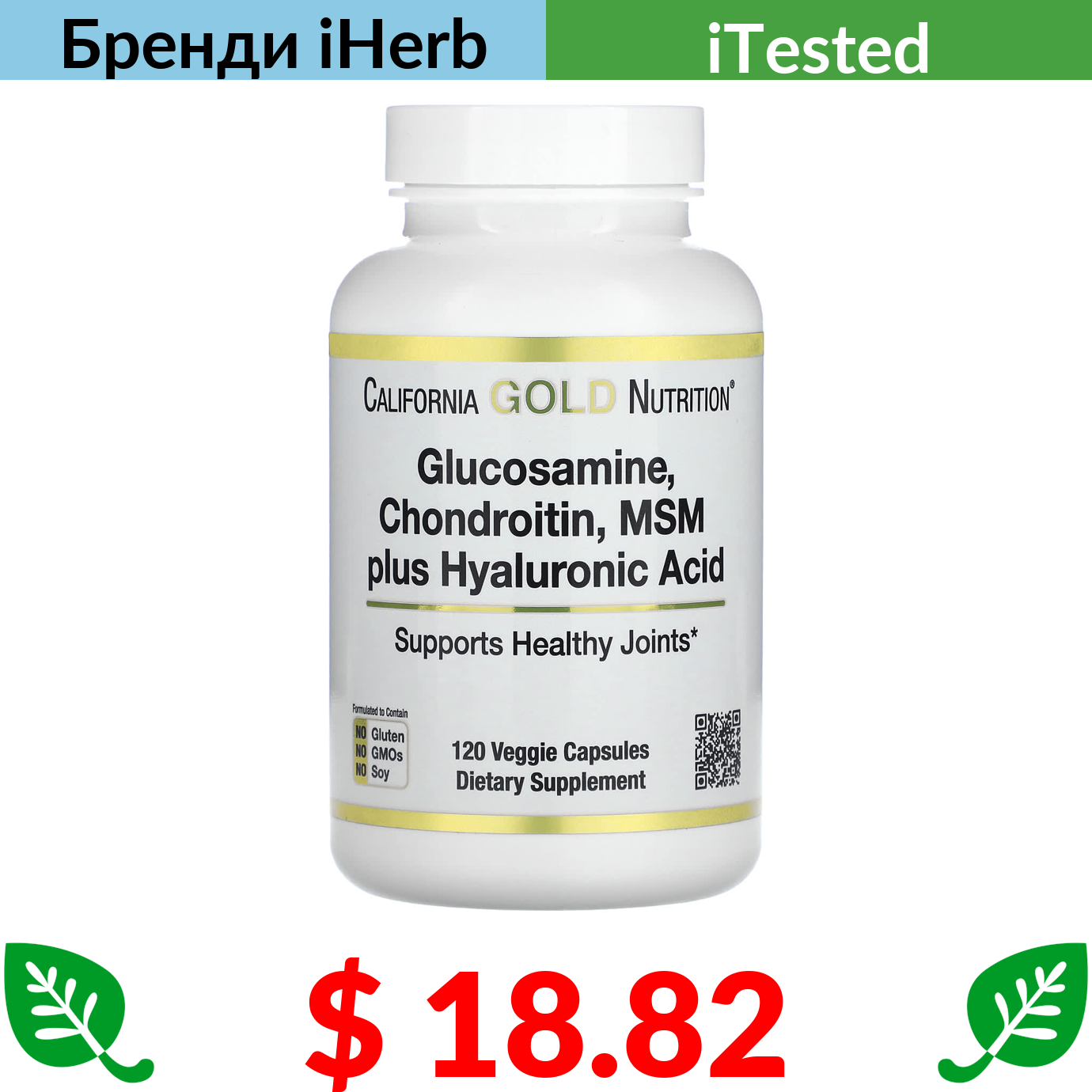 $ 18.82 California Gold Nutrition, глюкозамін, хондроїтин, МСМ і гіалуронова кислота, 120 рослинних капсул