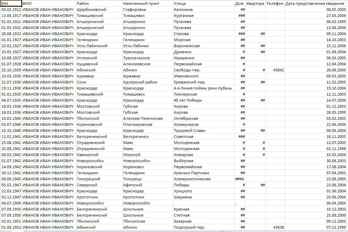 Могу выполнить выборку по базе жителей Краснодарского края.