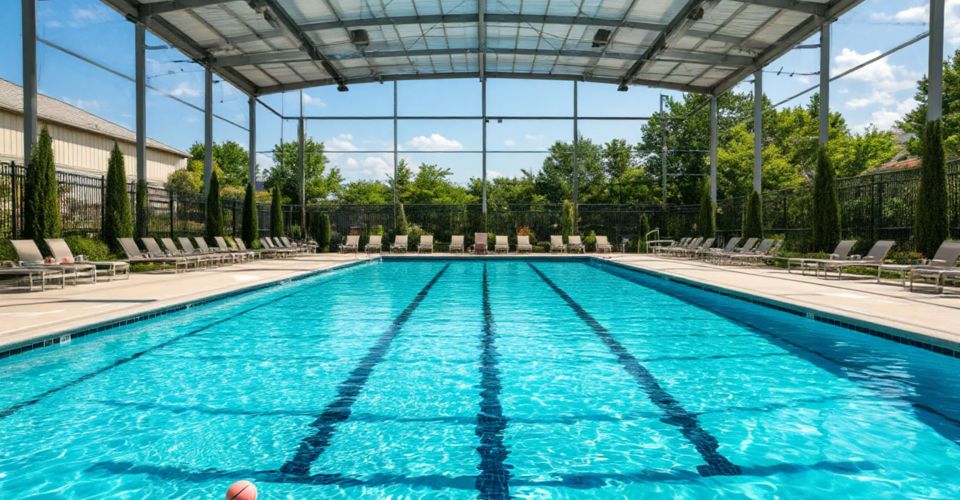 крытым и открытым бассейнами