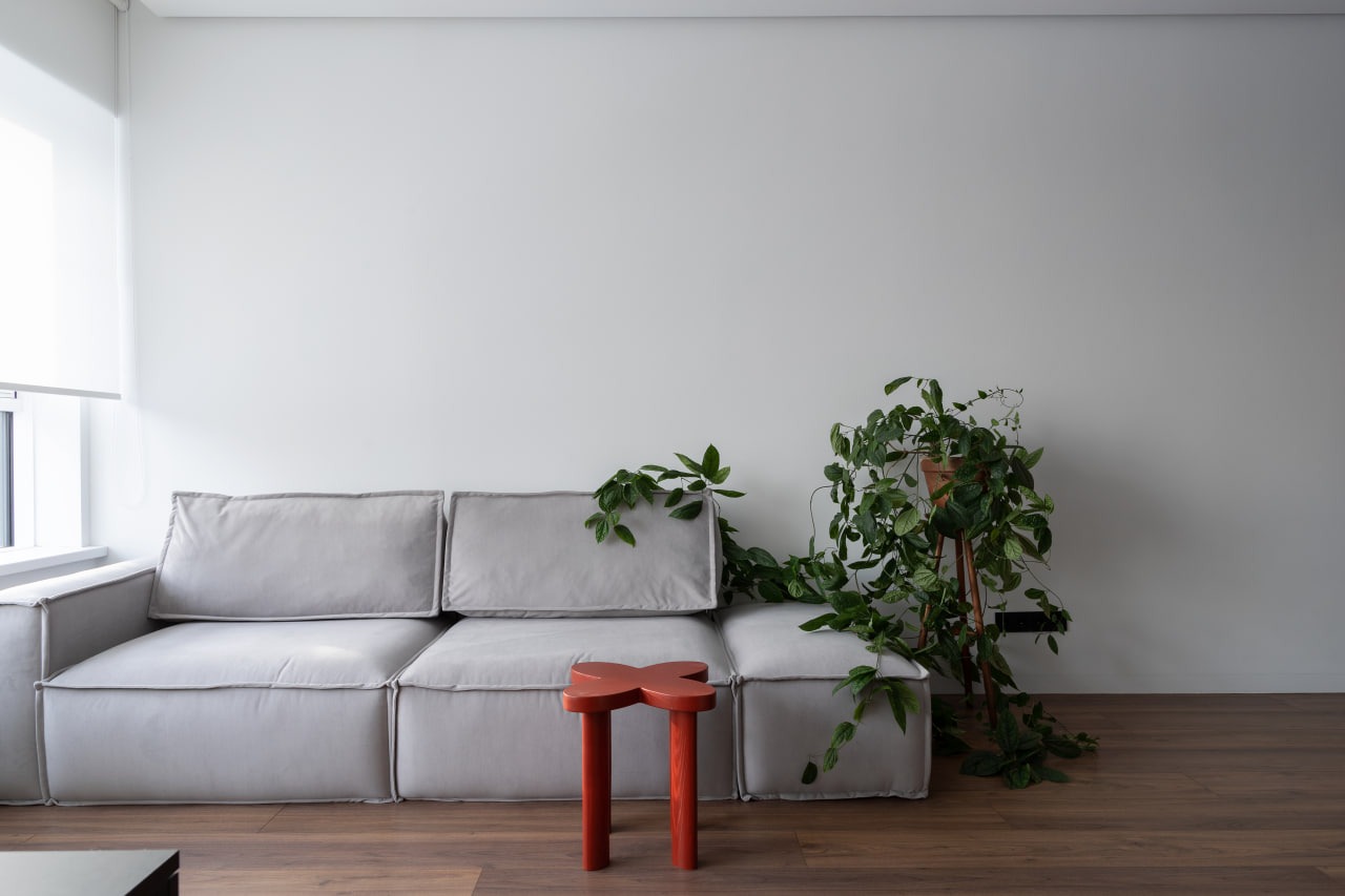Для квартиры была выбрана лаконичная отделка. По словам дизайнера, такая база позволила наполнить интерьер интересными предметами, не тратить деньги на дорогие материалы и дополнительное время на работу.