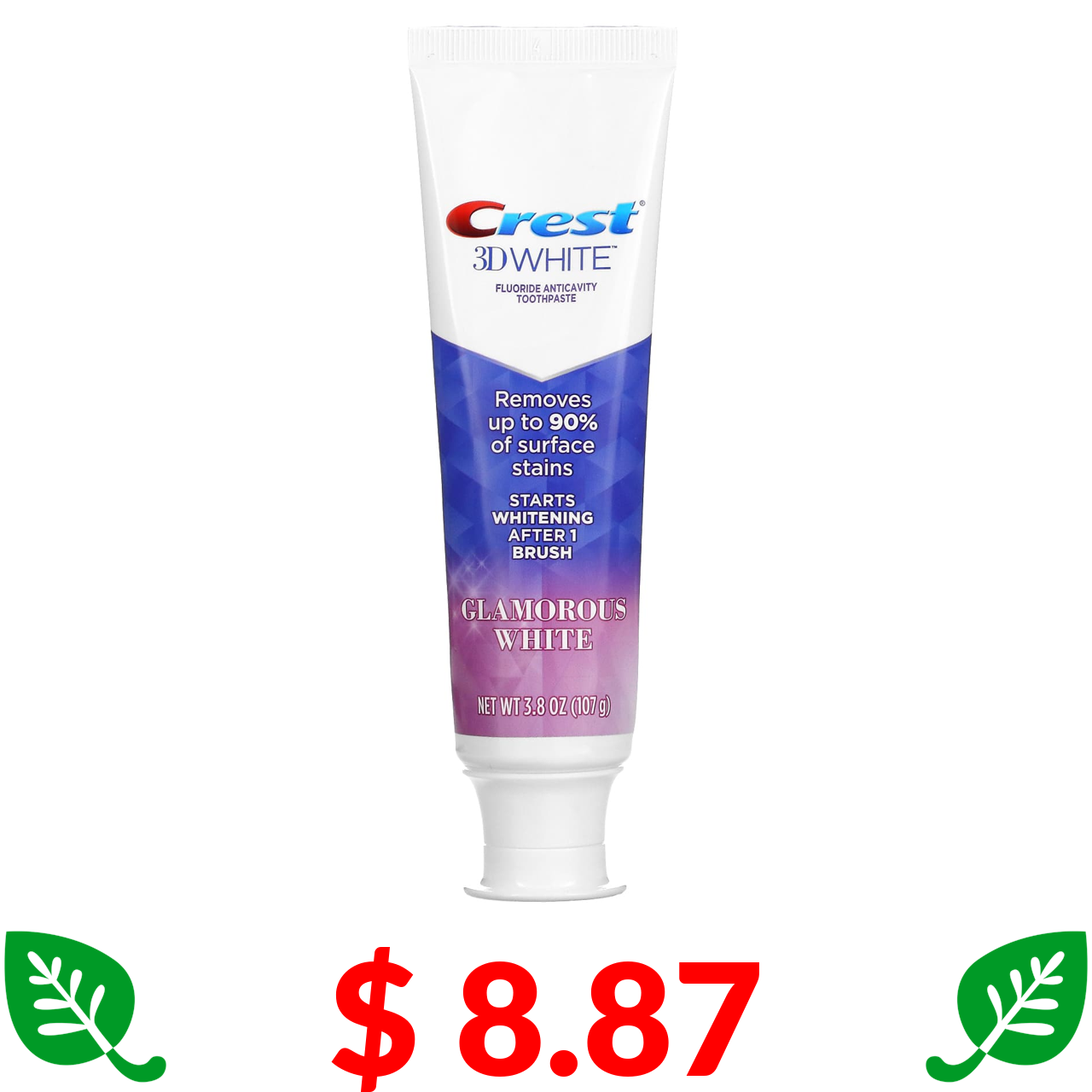 $ 8.87 Crest, 3D White, зубна паста проти карієсу, з фторидом, відбілювальна, 107 г (3,8 унції)