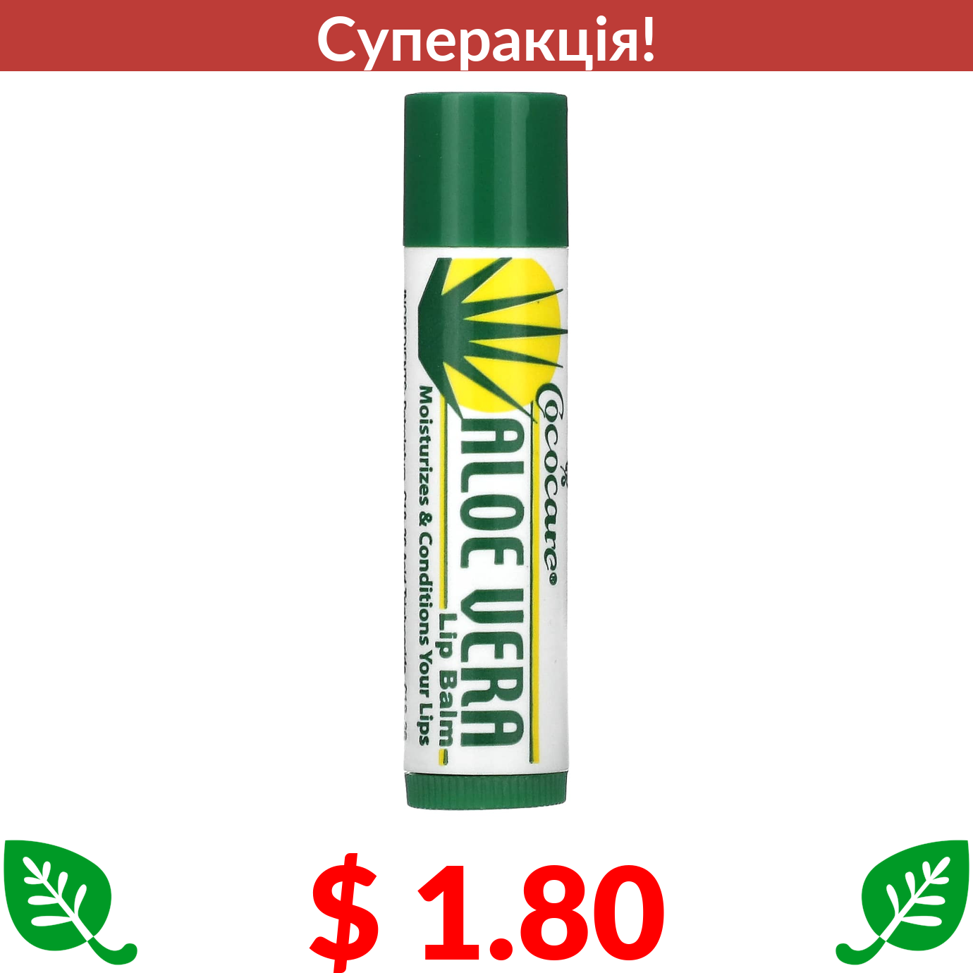 $ 1.80 Cococare, бальзам для губ з алое вера, 4,2 г (0,15 унції)