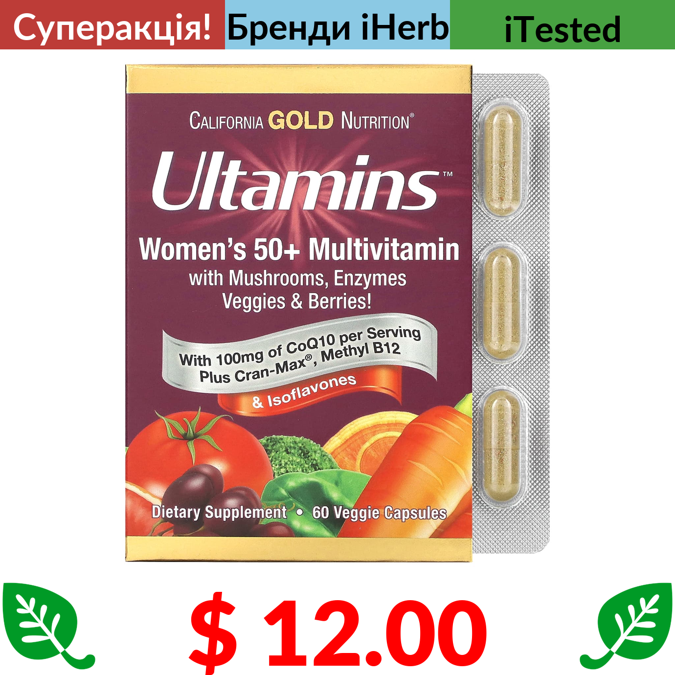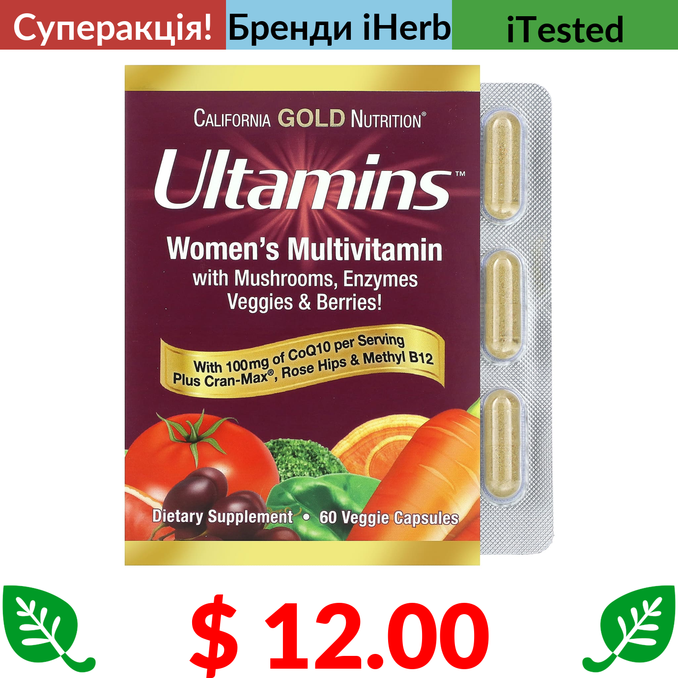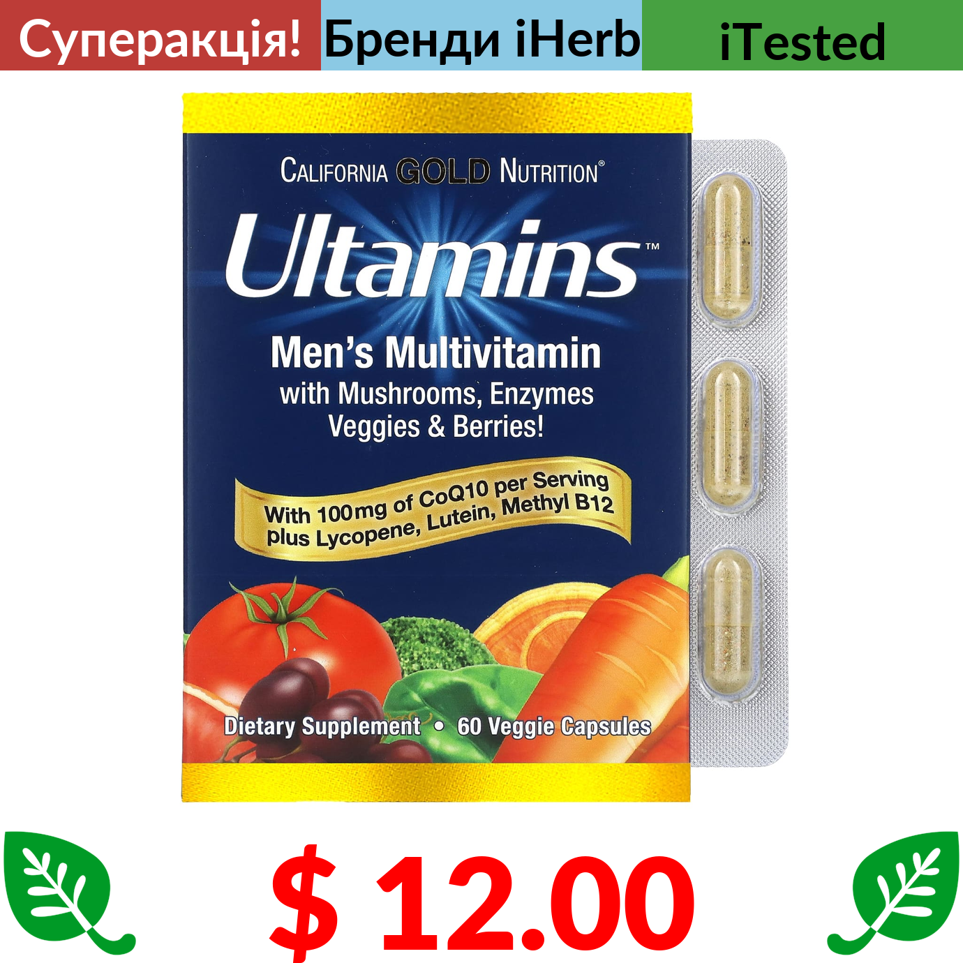 $ 8.57 California Gold Nutrition, лютеїн із зеаксантином, 20 мг, 60 вегетаріанських капсул