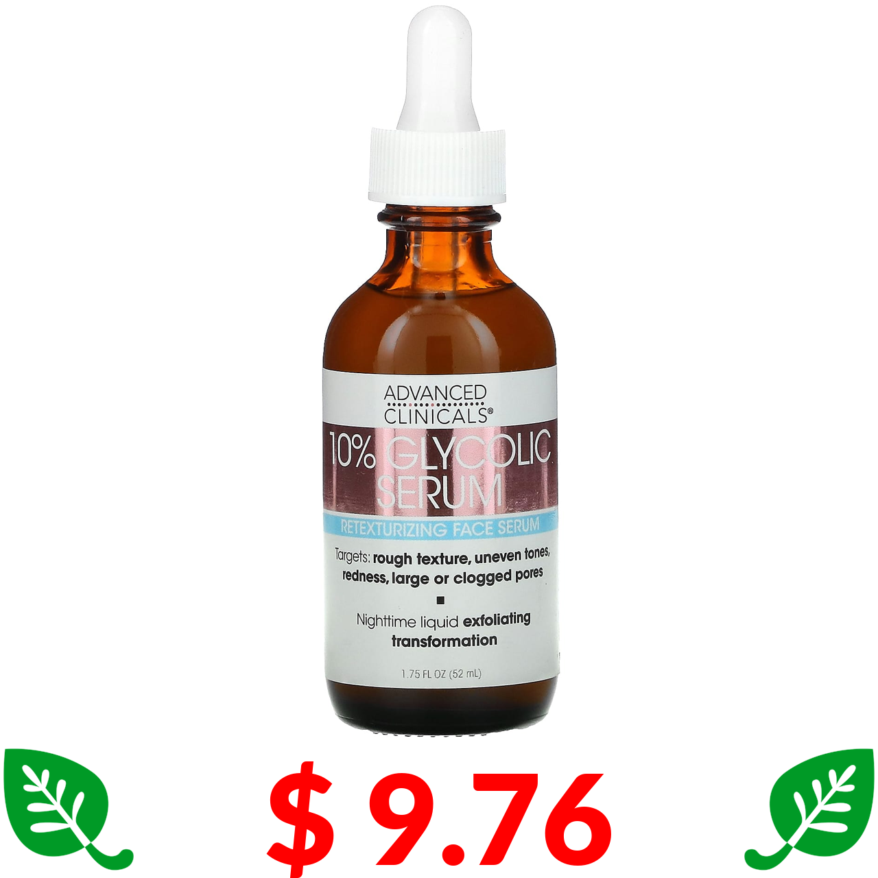 $ 9.76 Advanced Clinicals, сироватка з 10 % гліколевої кислоти, 52 мл (1,75 рідк. унції)