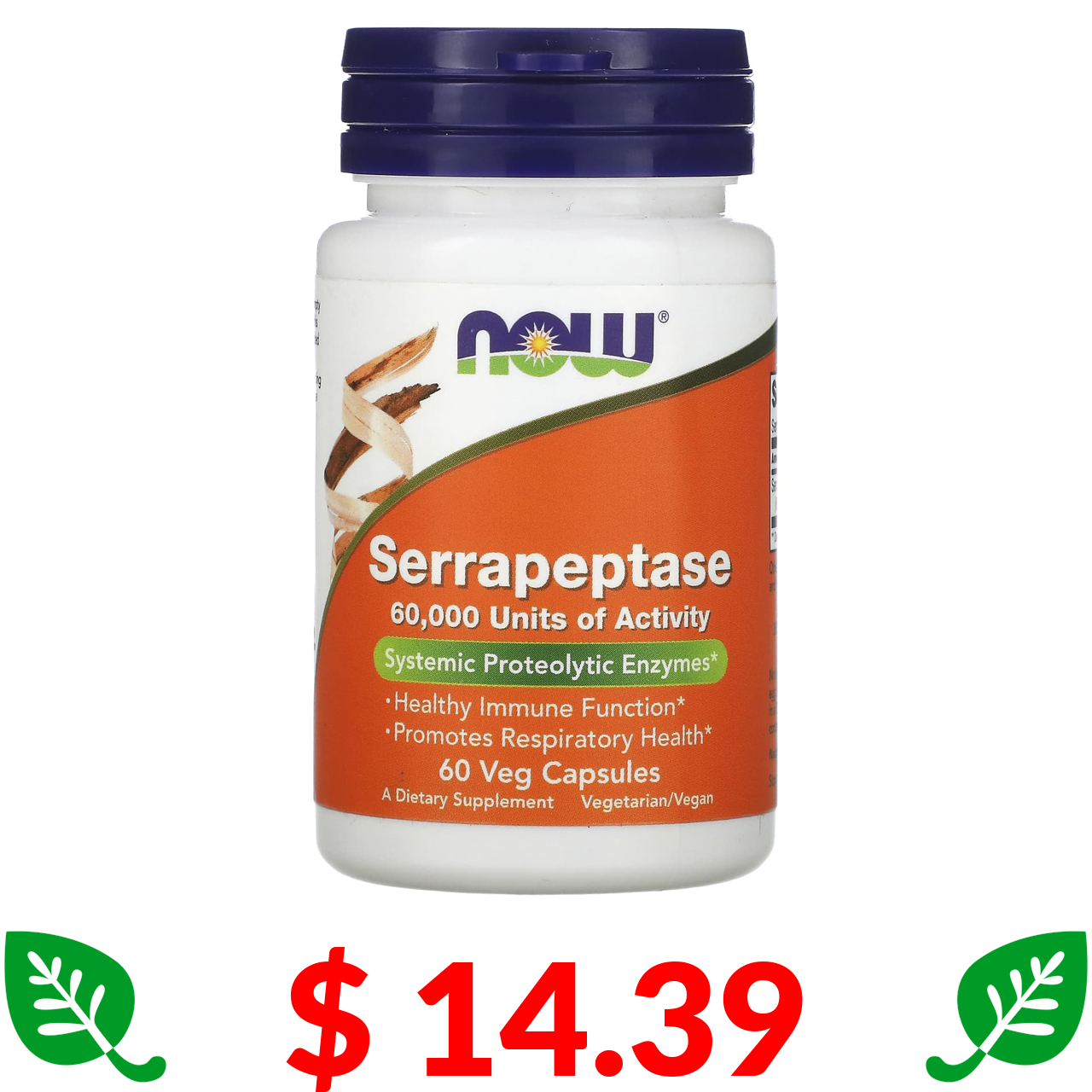 $ 14.39 Now Foods, серрапептаза, 60 вегетаріанських капсул