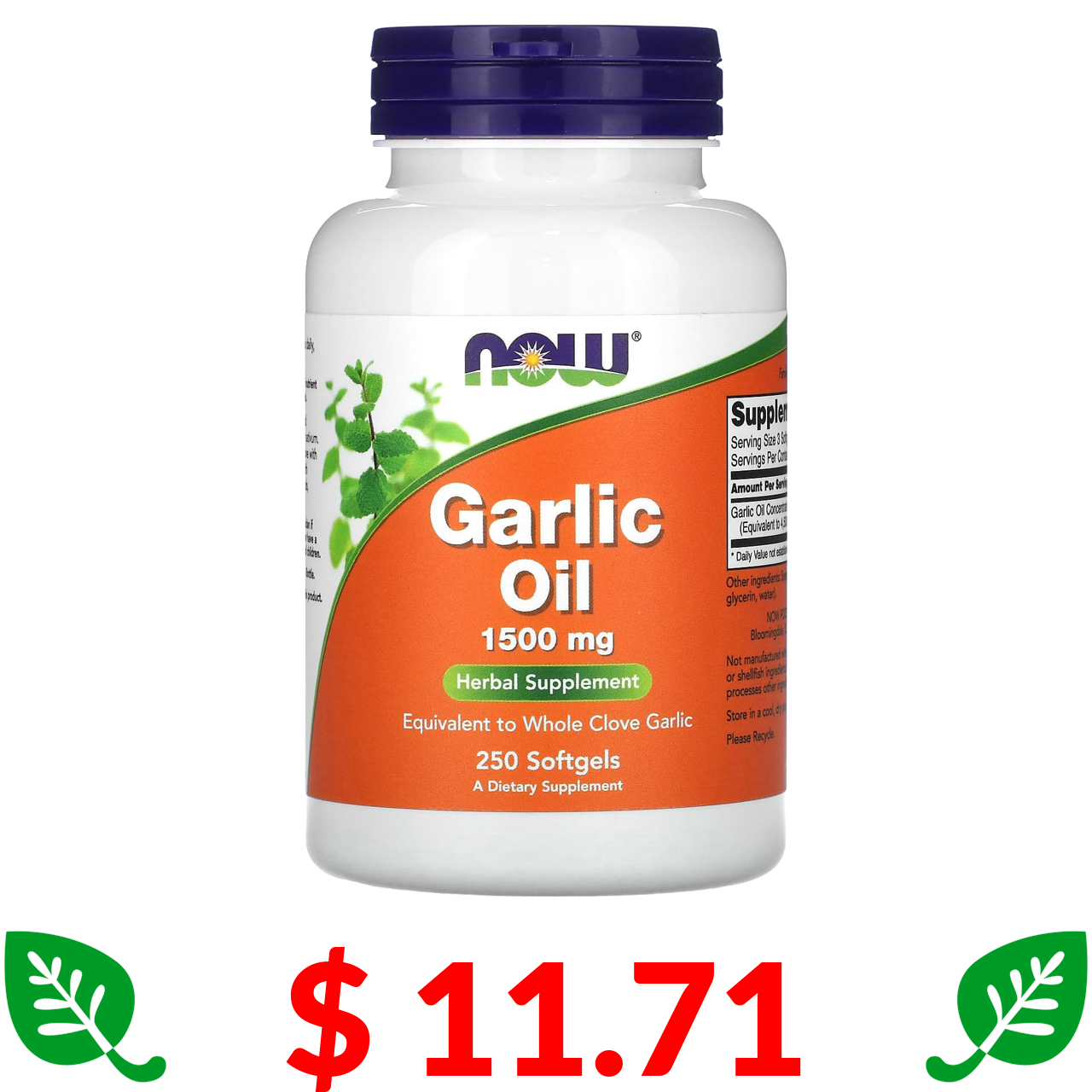 $ 11.71 Now Foods, часникова олія, 1500 мг, 250 капсул