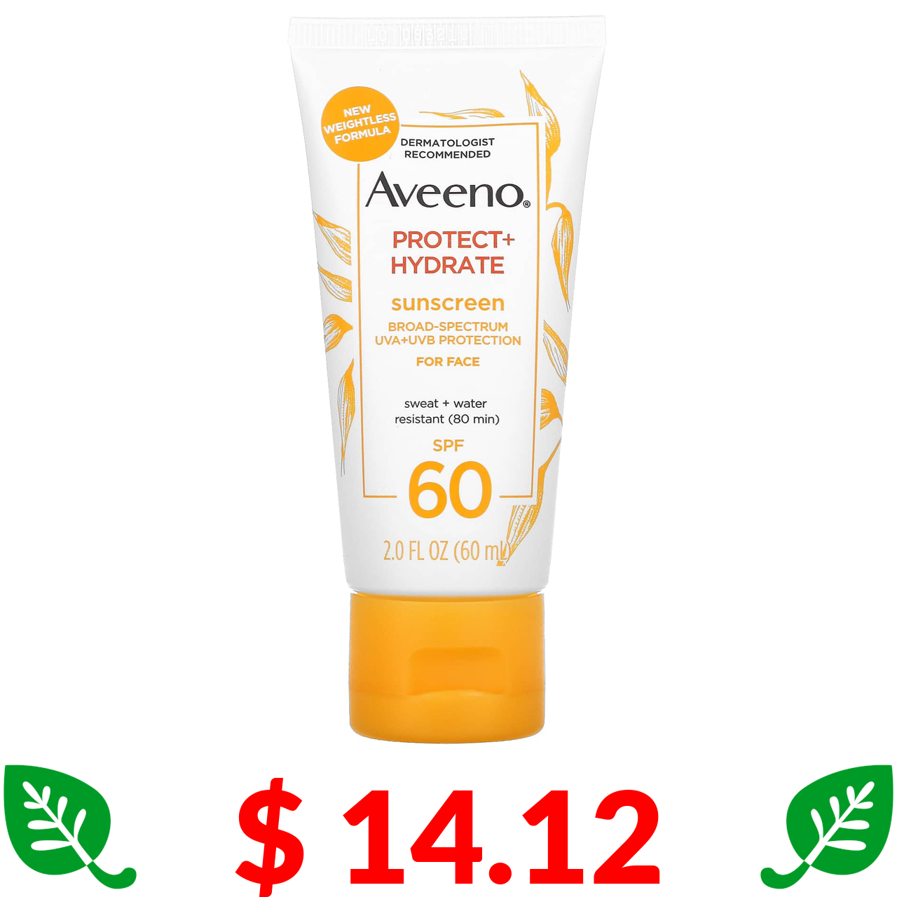 $ 14.12 Aveeno, сонцезахисний зволожувальний засіб для обличчя, SPF 60, 60 мл (2 рідк. унції)