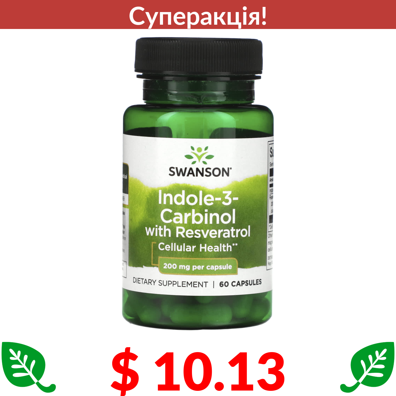 $ 10.13 Swanson, індол-3-карбінол із ресвератролом, 200 мг, 60 капсул