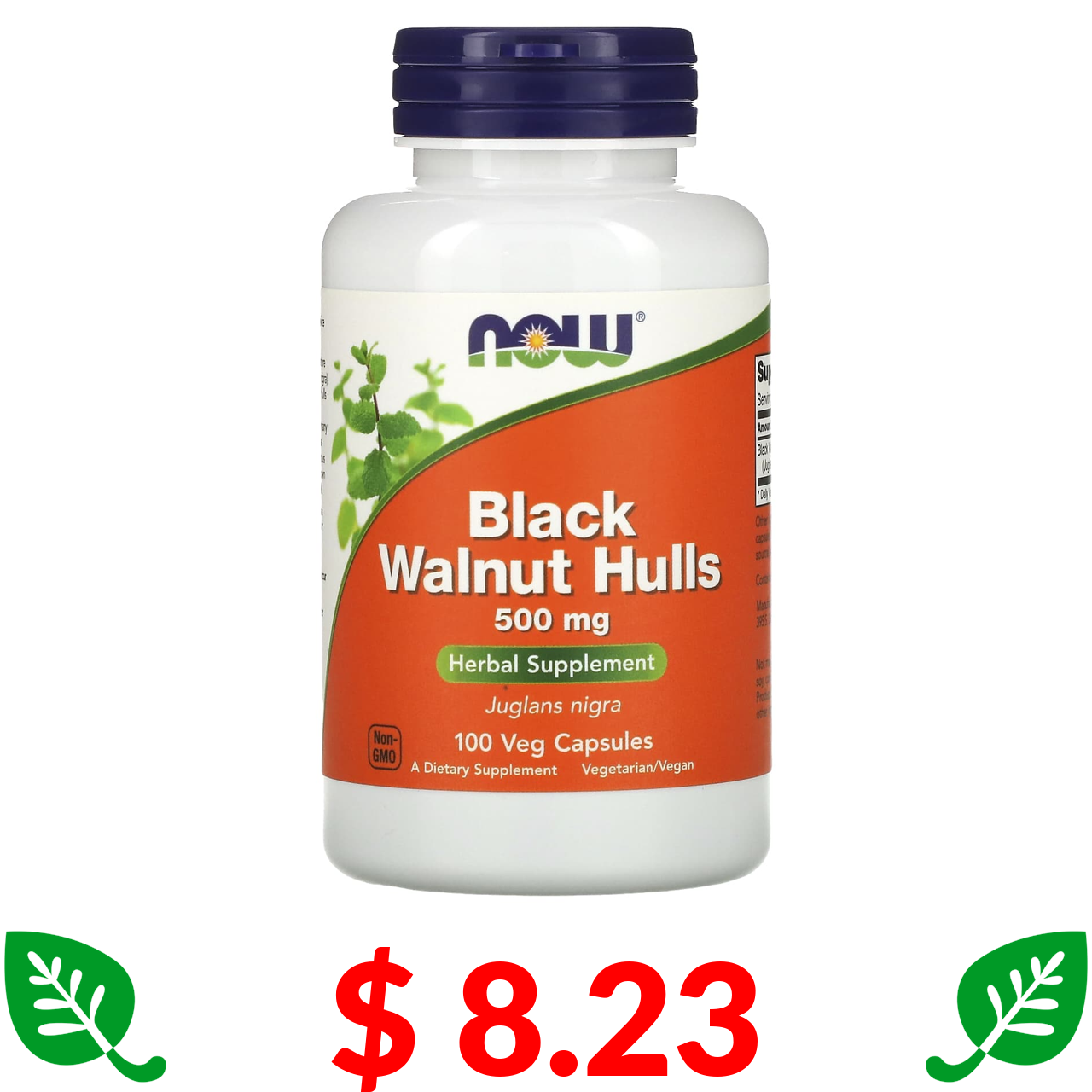 $ 8.23 Now Foods, шкарлупа чорного горіха, 500 мг, 100 рослинних капсул