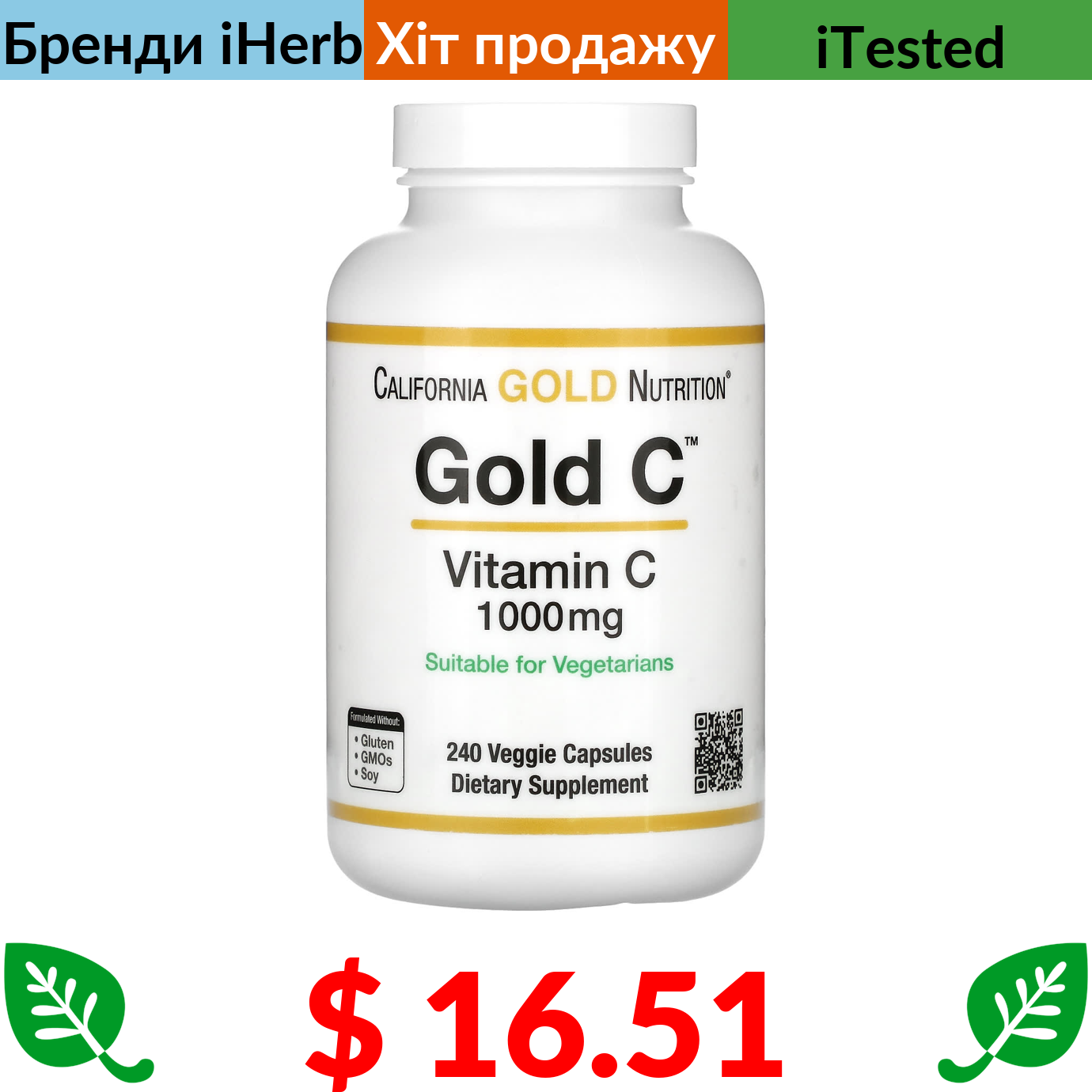 $ 16.51 California Gold Nutrition, Gold C, вітамін C класу USP, 1000 мг, 240 вегетаріанських капсул