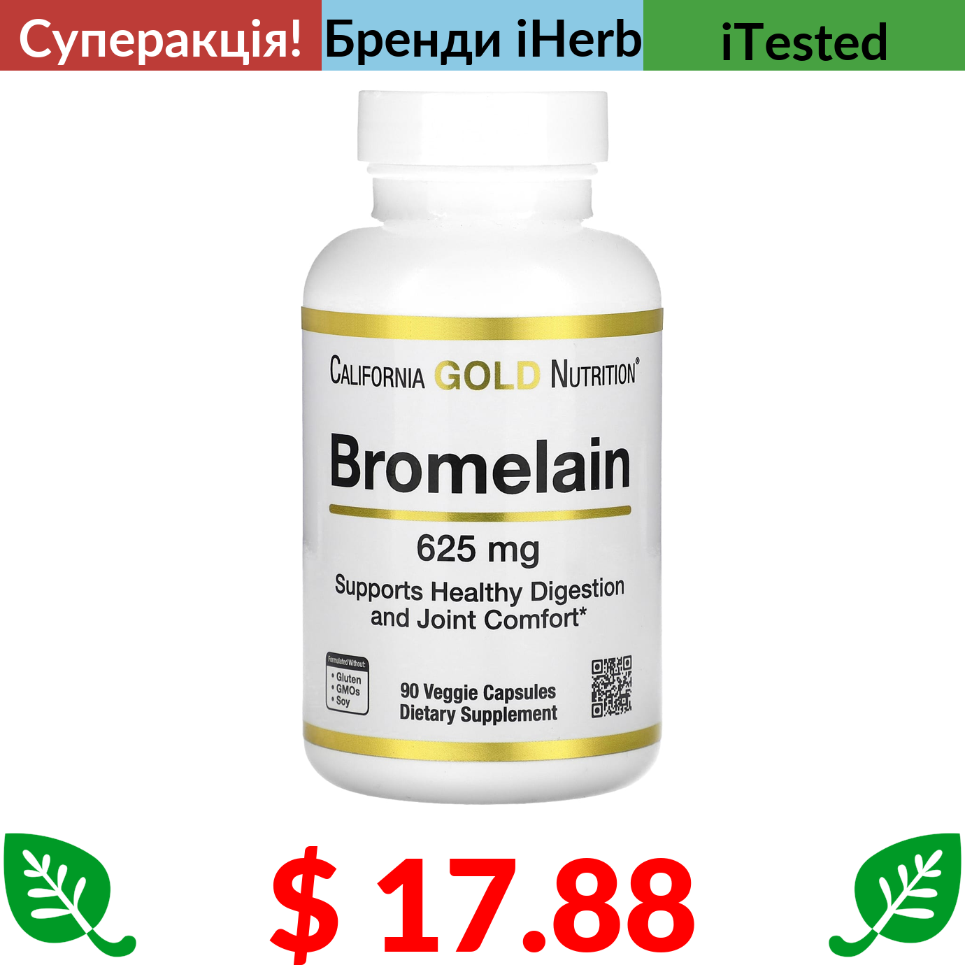 $ 17.88 California Gold Nutrition, бромелаїн, 625 мг, 90 вегетаріанських капсул