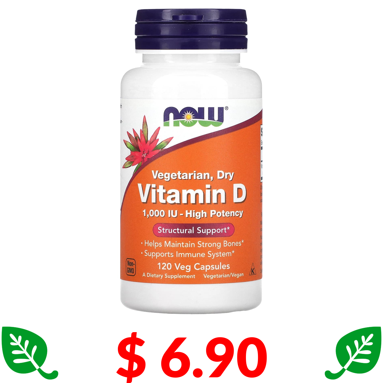 $ 6.90 Now Foods, вегетаріанський сухий вітамін D, 1000 МО, 120 вегетаріанських капсул