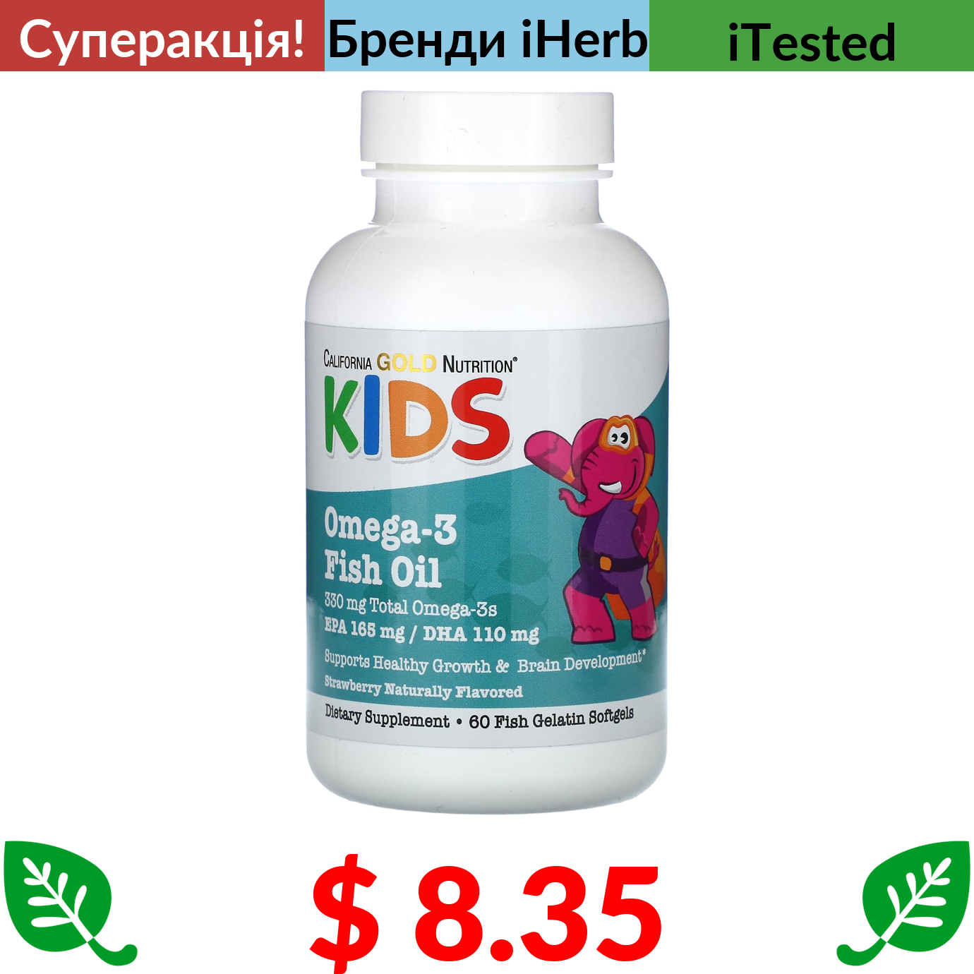 $ 5.45 California Gold Nutrition, вітамін D3, 125 мг (5000 МО), 90 капсул з риб’ячого желатину