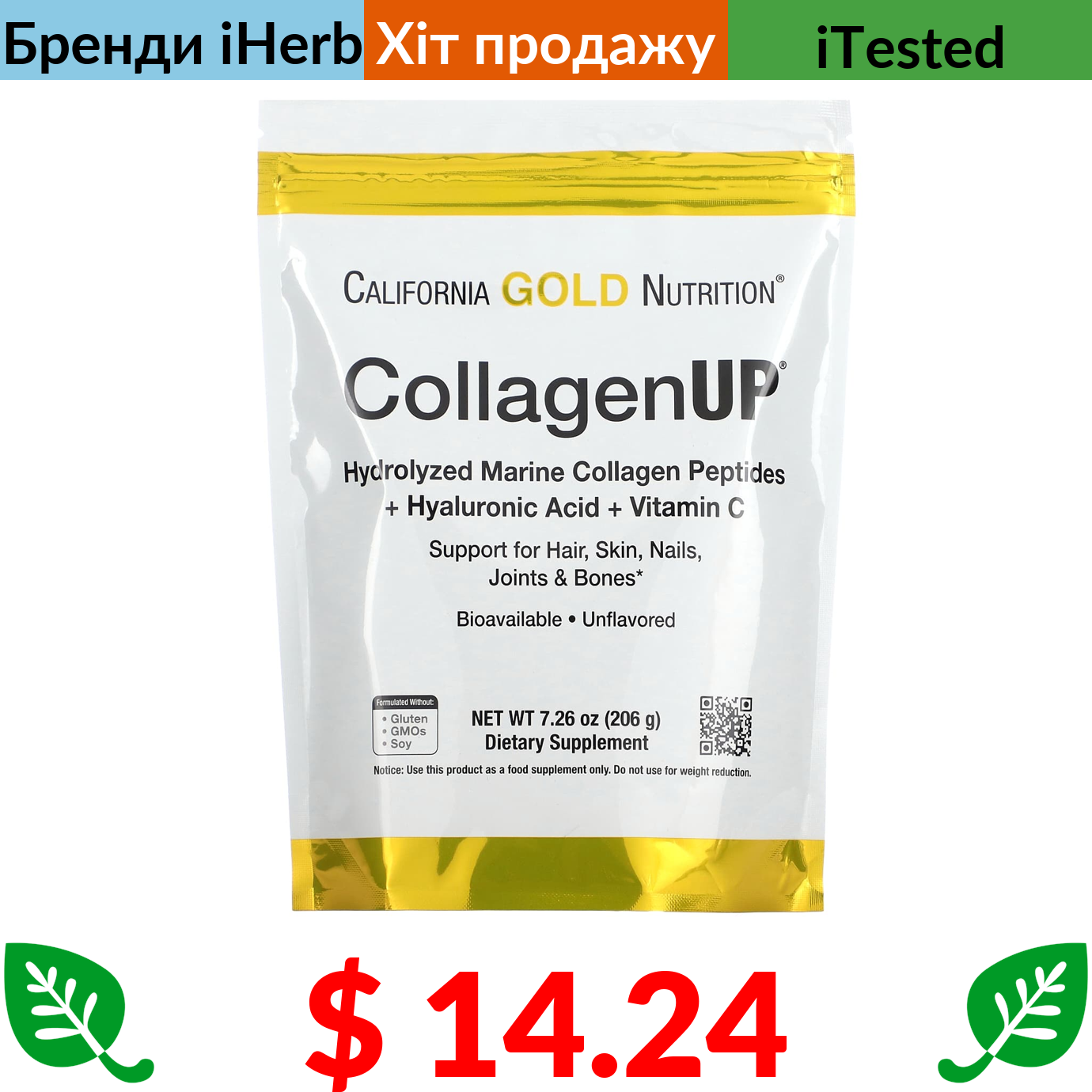 $ 2.78 California Gold Nutrition, Gold C, вітамін С, 1000 мг, 60 вегетаріанських капсул
