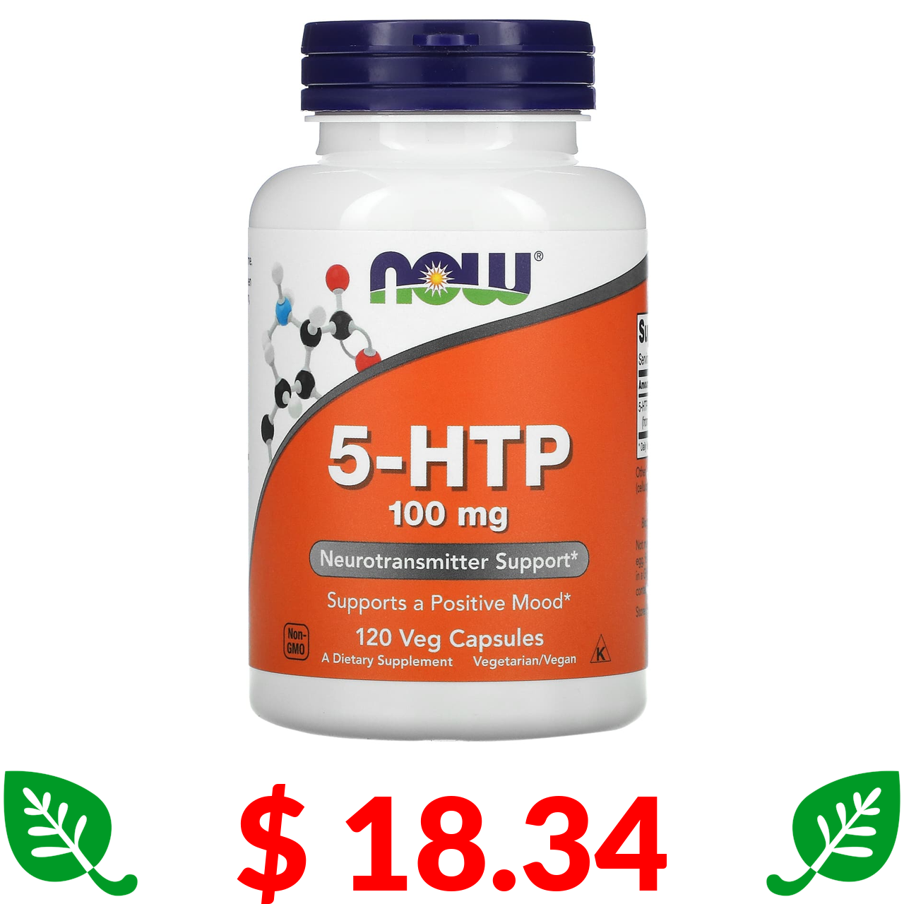 $ 18.34 Now Foods, 5-гідрокситриптофан, 100 мг, 120 рослинних капсул