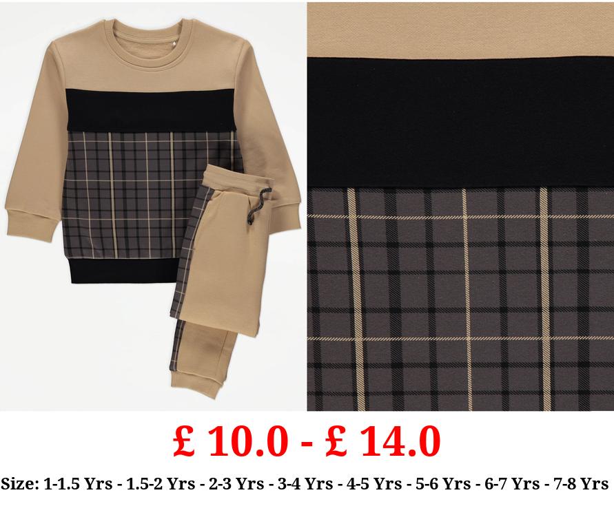 £ 10.0 - £ 14.0 Tan Checked Trim Sweatshirt and Joggers Outfit