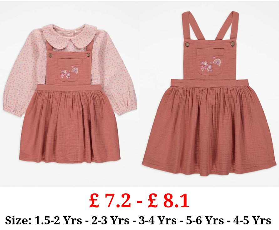 £ 7.2 - £ 8.1 Pink Floral Blouse and Pinafore Dress Outfit